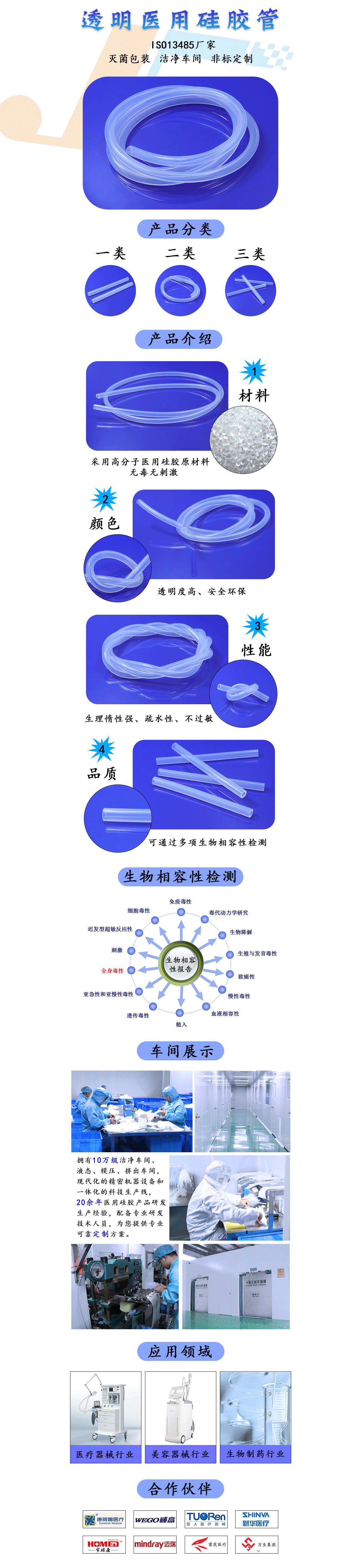 制作原材料為醫用高分子材料,具有抑菌、高透明、生物相容、人體接觸不過敏等特性,主要用于各種醫用引流